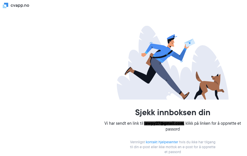 Hvis e-postadressen fungerer, men du ikke mottar e-posten med magic link, kan du sjekke spam-filteret eller forsøke å søke etter CVapp.no i innboksen.