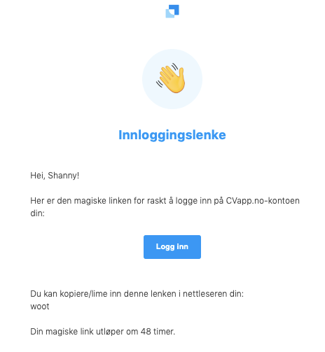 Magic link er bare gyldig i 48 timer. Når koblingen utløper, må du logge inn på nytt med din e-postadresse for å få en ny magic link.